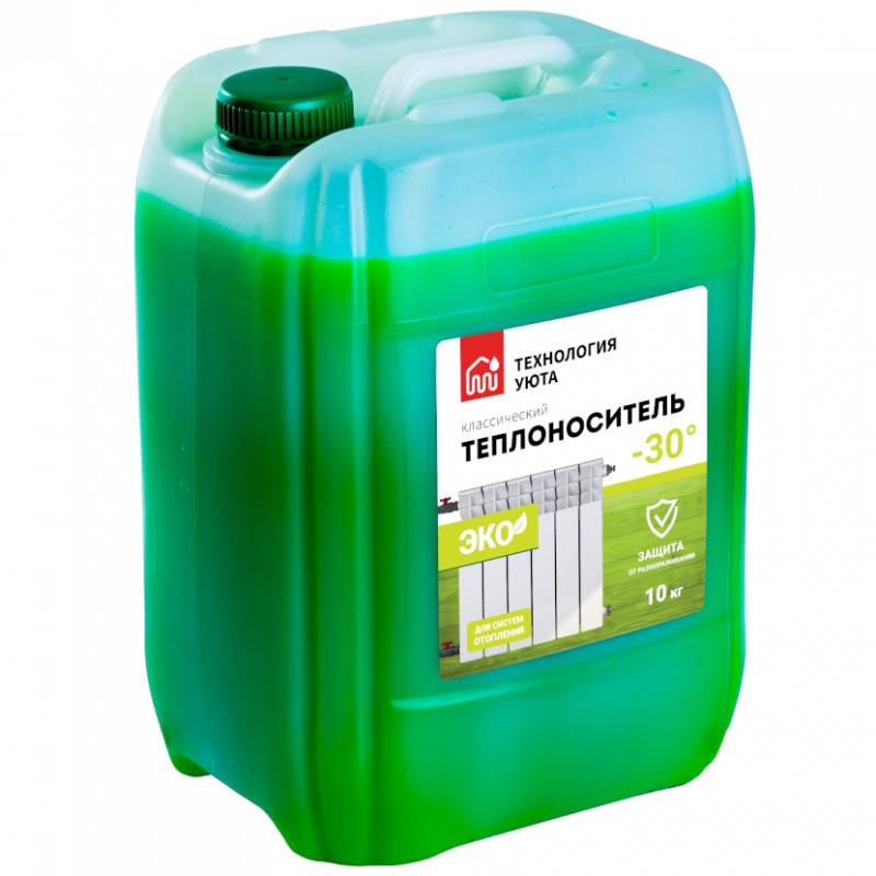 Теплохладоноситель “Технология Уюта ЭКО -30 °С” предназначен для использования в автономных системах отопления замкнутого типа, работающих в интервале температур от минус 30 °С до плюс 108 °С.
