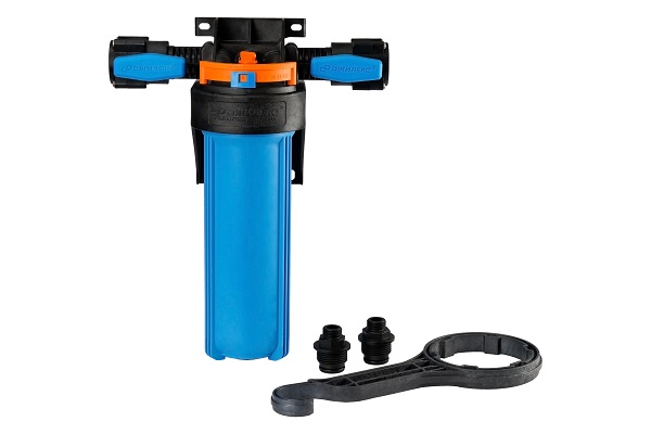 Для слива остаточной воды из корпуса фильтра (при замене фильтрующего элемента) на корпусе предусмотрена резьбовая заглушка, находящаяся на дне колбы фильтра.