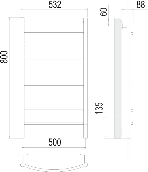 Терминус полотенцесушитель Электро, Классик КС П 8 500х800 "белый матовый" (quick touch)