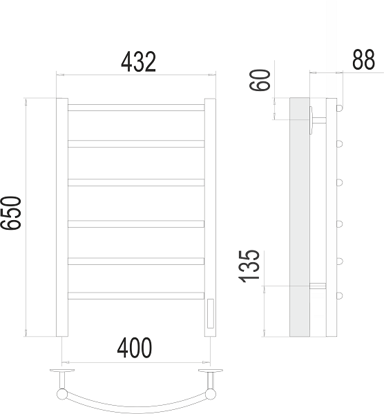 Терминус полотенцесушитель Электро, Классик П 6 400х650 (quick touch)
