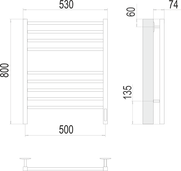 Терминус полотенцесушитель Электро, Ватикан КС П 8 500х800 "черный матовый" (quick touch)