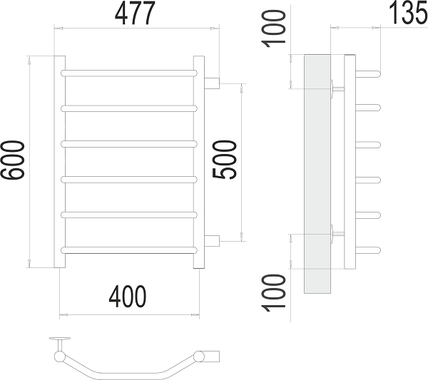 Терминус полотенцесушитель Виктория П 6 400х600 БП м/о500